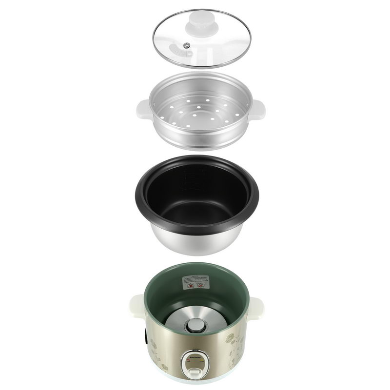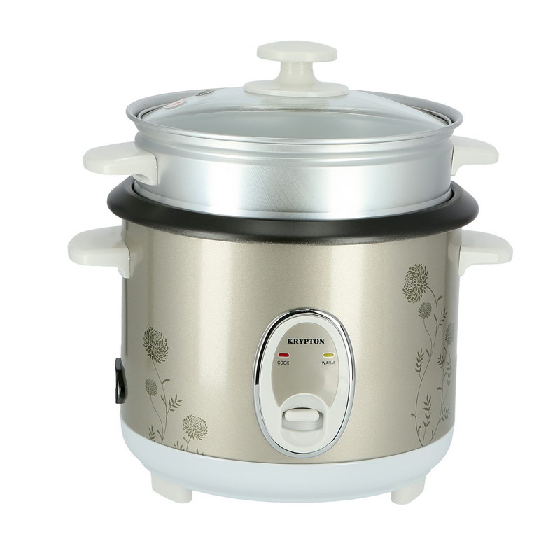 Krypton KNRC6055 1 L Rice Cooker with Steamer - Rice Cooker and Steamer is an easy way to cook rice. With a 1 L capacity bowl, enough space to cook up to 6 cups of rice, it is useful for larger households who love to cook. The keep warm function allows you to keep your rice warm, ideal for those busy families who find it hard to all sit down together. The Rice Cooker and Steamer includes a spatula and measuring cup along with an additional tray for steaming fish or vegetables making the piece very versatile. The stainless steel base design is easy to clean and the glass lid allows you to view your food whilst cooking and its non-stick removable bowl enables easy cleaning and easy of use.The main features of Krypton KNRC6055 are 3-IN-1 MULTIPLE FEATURES Cook: With the push of a button, the device starts working and automatically adjusts temperature. Steam: The steam function lets you cook rice healthily while preserving the nutrients. Warm: It can also warm the rice back to their fresh hot state. DURABLE AND TOUGHER OUTER BODY The cooker has an elegant design and a durable body. It has non-slip feet at its base, they keep the pot firmly in place. It has a compact and cute design. It covers less space and does not clutter your kitchen counter. 1L LARGE CAPACITY ACCESSORIES This pot has a large capacity of 1L. Now you can make large servings for the whole family or deal with sudden guests. It is quick and efficient. The package includes a measuring cup and spoon. The measurement cup adds preciseness to your cooking, and with the rice spoon, you can take rice out with ease.