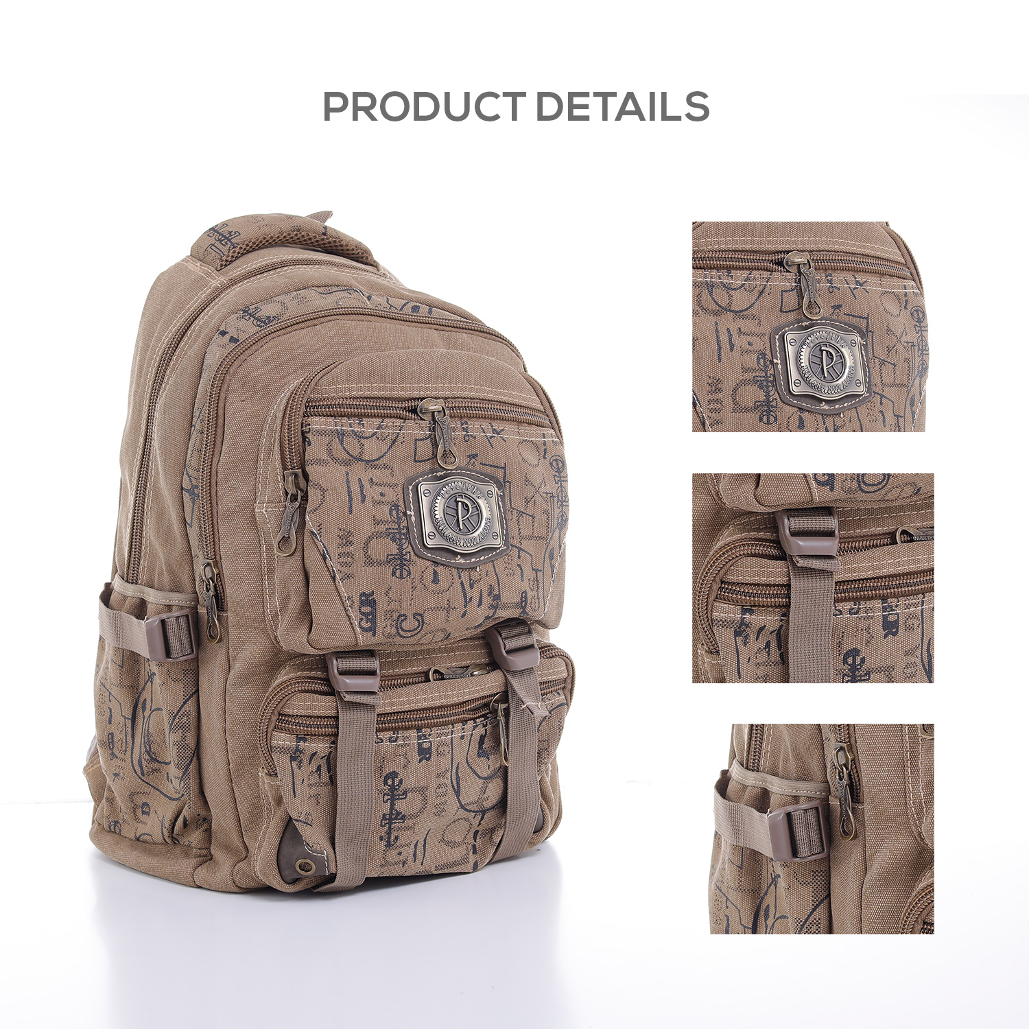 Perfect Travel CompanionOffers a spacious interior and two adjustable back straps for comfort. High-quality canvas leather material resists abrasion and prevents wear and tear. The zip fastening ensures all your things are safe inside with zero risks of falling out.Clever Design, More Capacity & CompartmentsThis lightweight daypack features 1 main zip compartment, 5 front zip pockets, to keep all things organized and separated; such as hydration reservoir, tent, trekking poles, hammock, water bottles, laptop and more. The main compartments can hold a laptop with spare space. Side pockets with bungees can hold a 500ml water bottle, an umbrella and a sun-glass, etc.Spacious StorageThere'll always be room for your gear, thanks to generously sized 2 main compartments and a range of additional areas to store all those extra accessories.Shoulder StrapsThese will secure the backpack and stop it falling off whilst on the move. The shoulder straps offer, additional comfort.Durable Zippers - The laptop backpack is made of canvas leather. Using high quality and durable zippers, it keeps long-term to work.