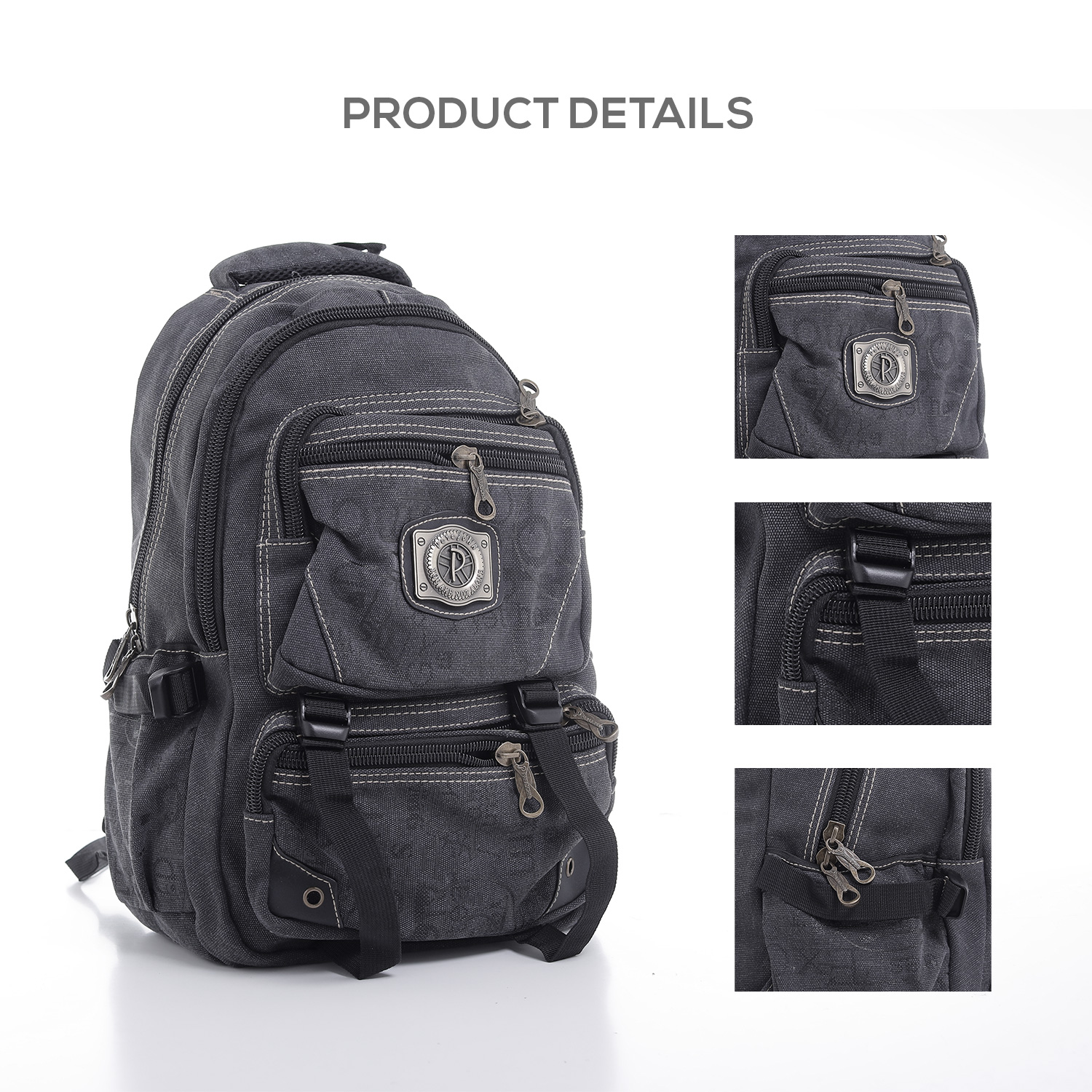 Perfect Travel CompanionOffers a spacious interior and two adjustable back straps for comfort. High-quality canvas leather material resists abrasion and prevents wear and tear. The zip fastening ensures all your things are safe inside with zero risks of falling out.Clever Design, More Capacity & CompartmentsThis lightweight daypack features 1 main zip compartment, 5 front zip pockets, to keep all things organized and separated; such as hydration reservoir, tent, trekking poles, hammock, water bottles, laptop and more. The main compartments can hold a laptop with spare space. Side pockets with bungees can hold a 500ml water bottle, an umbrella and a sun-glass, etc.Spacious StorageThere'll always be room for your gear, thanks to generously sized 2 main compartments and a range of additional areas to store all those extra accessories.Shoulder StrapsThese will secure the backpack and stop it falling off whilst on the move. The shoulder straps offer, additional comfort.Durable Zippers - The laptop backpack is made of canvas leather. Using high quality and durable zippers, it keeps long-term to work.