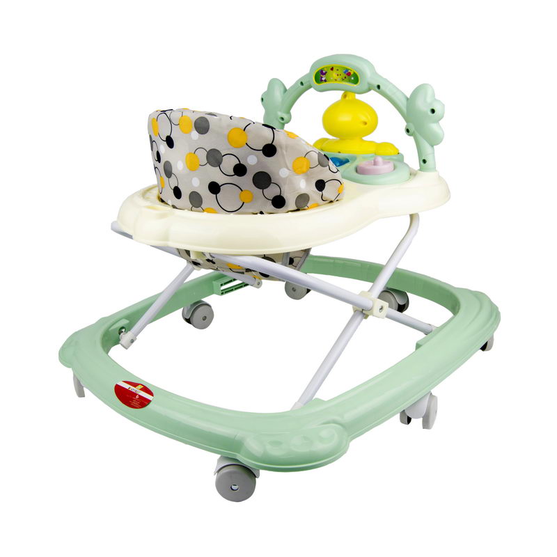 Baby Plus ,baby walker - height adjustable, musical, soft cushion height adjustable & interactive baby walker with music and play tray to entertain your child and encourage them to take their first steps. The sturdy, stable walker helps babies learn to stand and walk. Keep your baby comfortable and content with this baby walker. The brightly coloured baby walker helps your child to discover the floor get their footing and take those first steps as they experiment with moving around. Key features pp plastic/non-toxic material with nice sounds and play tray foldable & adjustable height 8 pair of wheels comfortable cushion folds flat for storage with minimum space with music the colourful front toys keep baby entertained wether you are at home or on the go, your baby will be content and comfortable in this walker. For ages 9 months and above