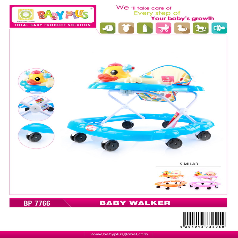 Baby Plus ,baby walker - height adjustable, musical, soft cushion height adjustable & interactive baby walker with music and play tray to entertain your child and encourage them to take their first steps. The sturdy, stable walker helps babies learn to stand and walk. Keep your baby comfortable and content with this baby walker. The brightly coloured baby walker helps your child to discover the floor get their footing and take those first steps as they experiment with moving around. Key features pp plastic/non-toxic material with nice sounds and play tray foldable & adjustable height 8 pair of wheels comfortable cushion folds flat for storage with minimum space with music the colourful front toys keep baby entertained wether you are at home or on the go, your baby will be content and comfortable in this walker. For ages 9 months and above