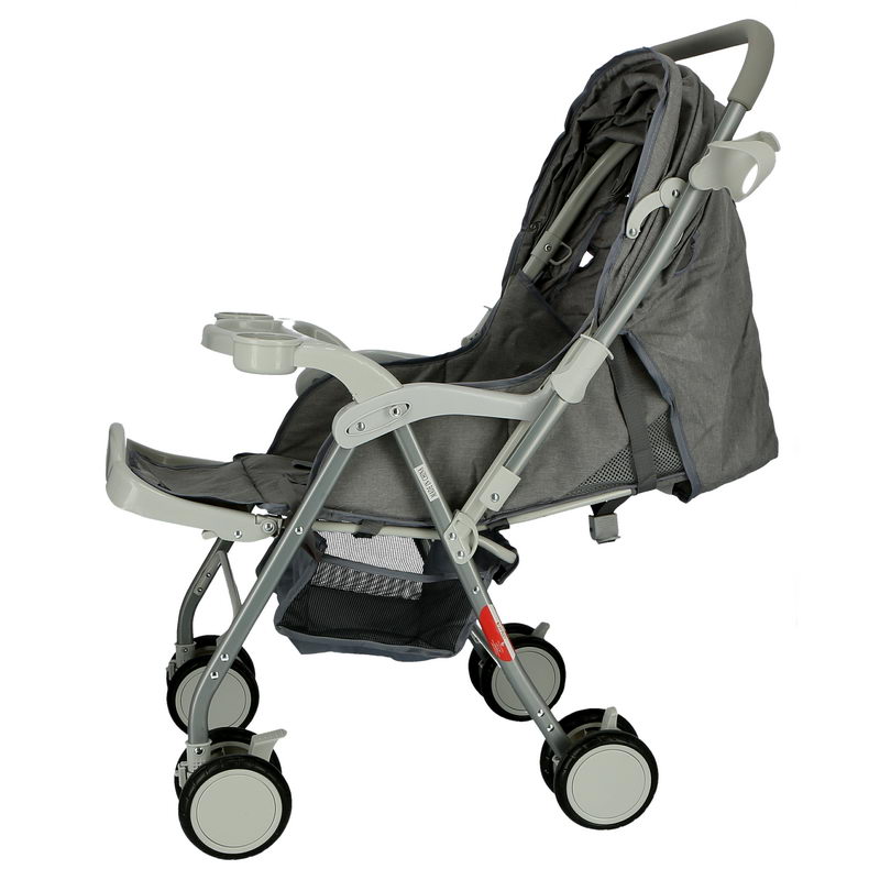 Let your baby enjoy new sights and sounds by exploring the outside world in the lightweight Baby Plus BP8983-GREY Baby Stroller. Thanks to this stroller's canopy, your baby is shielded from the sun. It also features an adjustable backrest and a safety belt to make sure the baby is comfortable yet safe. Extra spacious stroller with heavy duty wheels - Best choice for outdoor use. The front swivel wheels with brakes and rear wheels with brakes add to the convenience of this baby stroller. Sturdy EVA handlebar for comfortable and safe grip. Features a fixed front bar which also works as an extra safety system. Easy fold compact - Ideal for traveling with Kids & Toddlers.5 Point Safety HarnessThe 5-point safety harness is designed to hold your baby securely around the shoulders and the waist.Get ready to face the sunThe canopy protects your child from harsh sunlight & strong winds & looking window helps keep a watch on baby while strolling.Spacious Storage basketThe basket can accommodate quite a few goodies, so that your hands are free when you are taking the baby out for a stroll. This is especially helpful while shopping with your baby, so you don't have to worry about where to put the packages.Soft Cushioned SeatThe soft cushioned seat provides maximum comfort to your baby, almost like the warmth of your arms.