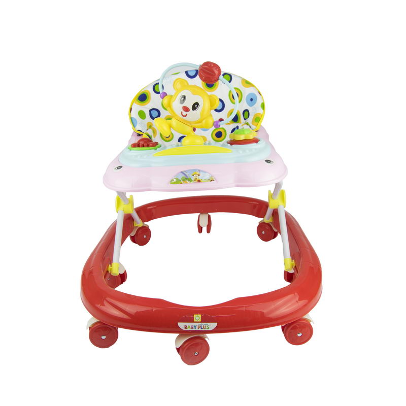 Baby Plus ,baby walker - height adjustable, musical, soft cushion height adjustable & interactive baby walker with music and play tray to entertain your child and encourage them to take their first steps. The sturdy, stable walker helps babies learn to stand and walk. Keep your baby comfortable and content with this baby walker. The brightly coloured baby walker helps your child to discover the floor get their footing and take those first steps as they experiment with moving around. Key features pp plastic/non-toxic material with nice sounds and play tray foldable & adjustable height 8 pair of wheels comfortable cushion folds flat for storage with minimum space with music the colourful front toys keep baby entertained wether you are at home or on the go, your baby will be content and comfortable in this walker. For ages 9 months and above