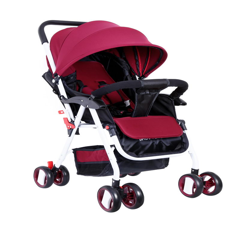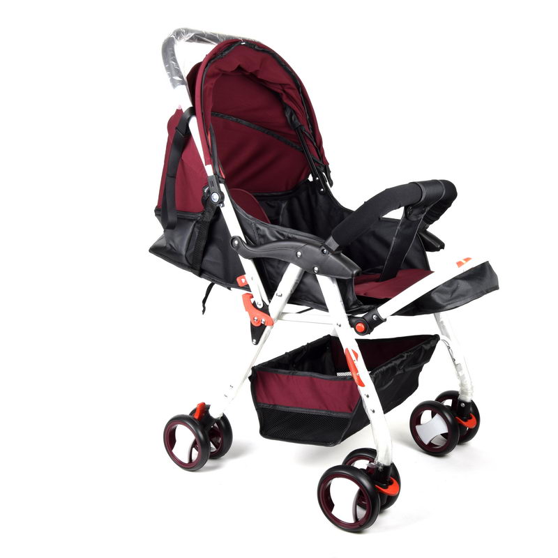 Baby Plus Bp8482 Wine & Red Stroller Cum Pram, 0-36 M