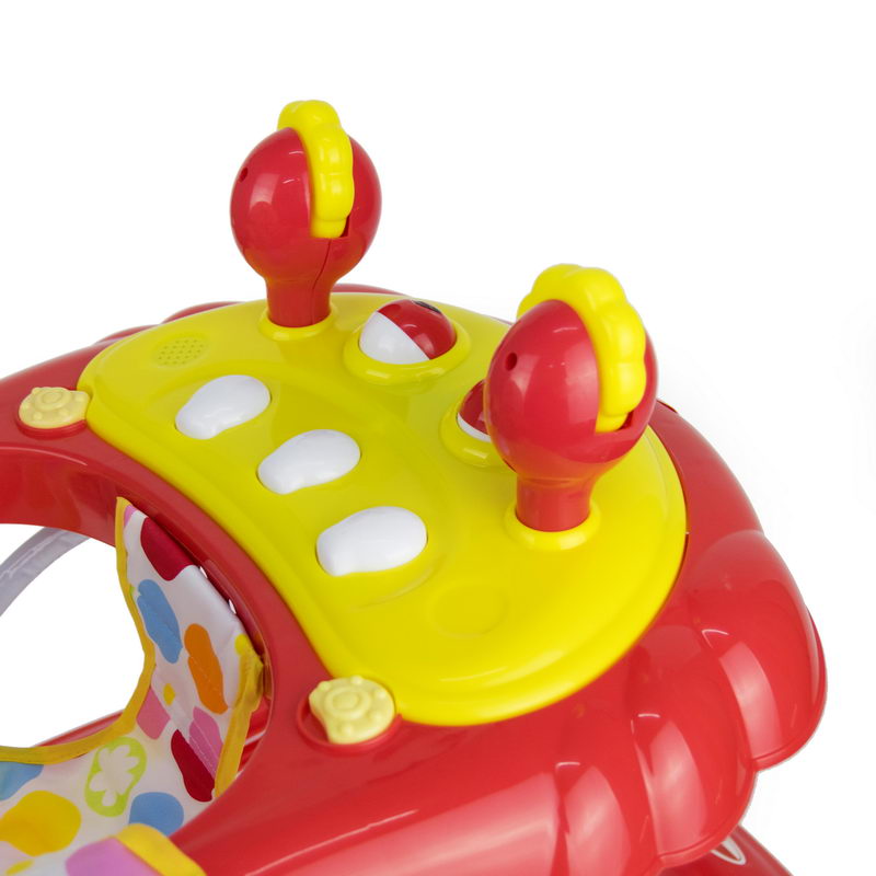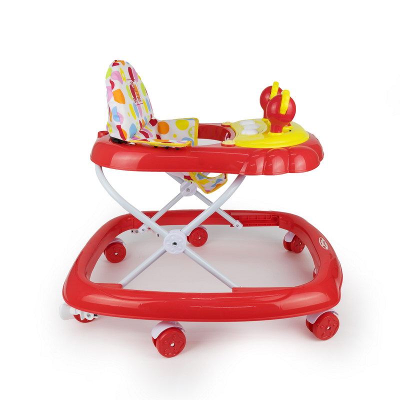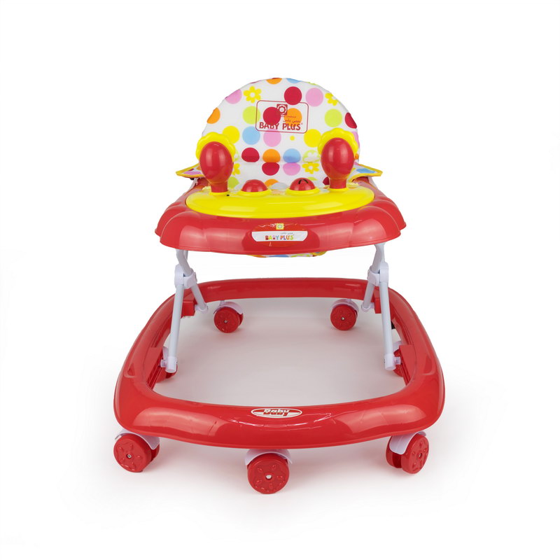 Babyplus Walker Suitable from 6-12 months (up to 12 kgs); Electronic tray with lights and sounds; Toy tray easily removes for feeding time, Folds flat for easy storage and travel; Complies with European safety standards EN 71-EN-1273; Folded size (cm) (LxWxH: 63x66x27, rip strips to reduce movement for safety;. If your young one wants to walk independently, then having this sturdy baby walker is a must. The walker is quite colourful and also has light and sound functions that will keep your tiny tot engrossed for a long time. Moreover, this walker has easy-grip strips for easy manoeuvrability. Removable toy bar with toys, Large surround tray for food or toys, Extra wide base provides superior support and stability, High-back padded seat, 3-position height adjustable, Folds flat for easy transport or storage, The walker has a well-padded seat and can be adjusted in height to suit the build of different children ensuring that their feet touch the floor correctly. The Walky Talky Walker also has front swivel wheels making it easier for baby to guide themselves around and safety akes called 'stoppers' which stop the structure when reaching a step. The play panel is detachable to play also when not in the baby walker