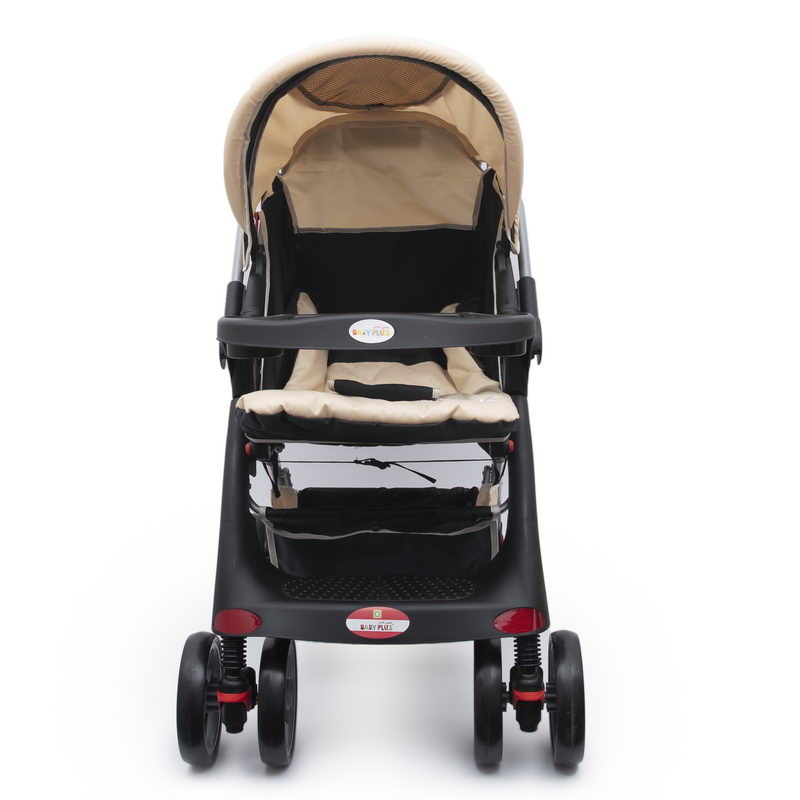 BABY STROLLER also called full-size or regular strollers, are usually designed to allow babies to lie on their backs for the first few months. Some are are designed to hold infant car seats for when the baby is older. They are usually built with enclosed sides or some type of containment. Some baby strollers may have features to stop babies from slipping through leg openings.Baby Plus is stylish, light, comfortable Baby Stroller. The essence of urban mobility, lightweight, compact and nimble. The seat fully reclines and provides a comfortable ride for your baby. The one-piece height adjustable handle and lockable front swivel wheels make the stroller easy to handle for the parent. The product include a travel bag to easily carry the product. Product Description: Go out for a stroll with your little one in this baby stroller from Baby Plus. For ultimate comfort, this pram has soft cushion seat and backrest. The convenient handle of this baby stroller lets the parent push forward effortlessly. Stopping to talk with someone, Just lock the wheels with the lock mechanism, so that the pram remains still till you start walking again. There is a hood to cover the pram, so that your baby's sleep doesn't get disturbed due to bright light. Also, the front tray has two holders on which you can easily carry the feeding bottles