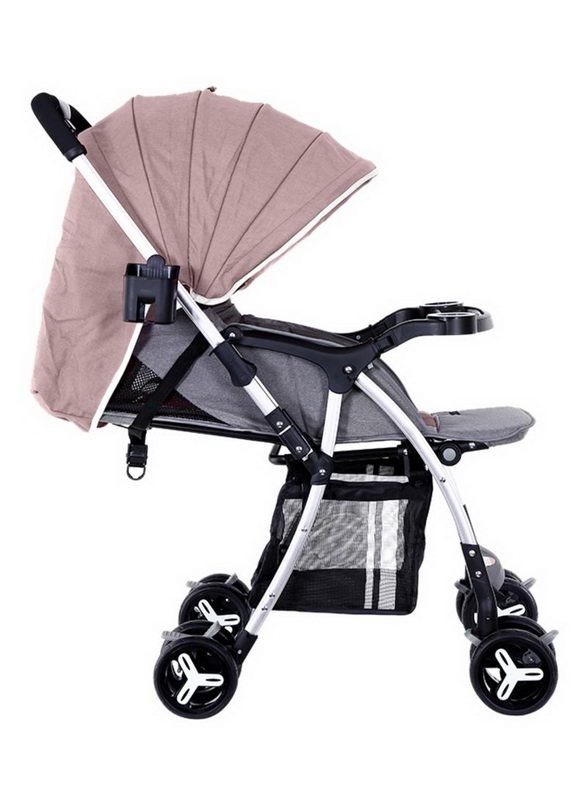 Baby Plus Pram Stroller Foldable And Sunshade Canopy Browngreywhite