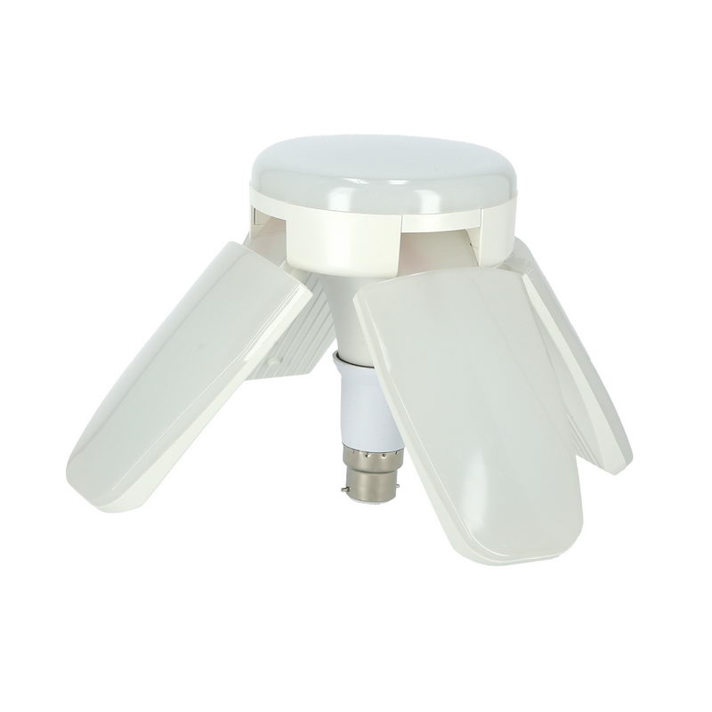 Olsenmark OMESL2788 Energy Saving LED Bulb Here is an Eco-friendly Energy Efficient high brightness LED lamp in the shape of 4-Blade Fan suitable for your indoor needs like Lobby, Dining room, Corridor, Balcony, Workshop, Warehouse, Garage, Showroom, etc. The Blades are foldable and adjustable in 3- positions.Olsenmark fan type LED bulb is designed to bring flexibility in lighting to your living spaces. The bulb can be folded like an umbrella to give direction to the light like focus on a specific area or spread the light uniformly across the desired space.