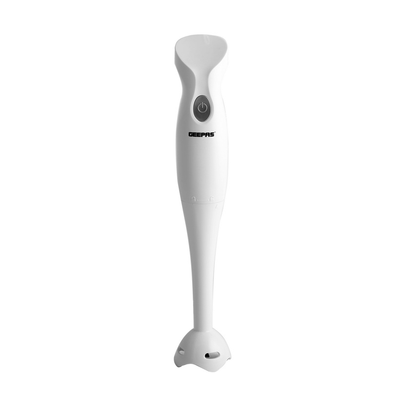 Hey! I'm Your Helping Hand To Create Smoothies Soups Sauces Baby Food, Mix Puree WhiskAchieve your ideal blending consistency with the Geepas Hand/Stick Blender. Whether you want to make healthy smoothies, puree baby food or blitz a soup, this Geepas 200W Hand Blender will easily mix things up in the kitchen. Simple to use, plug your appliance into the mains, simply immerse your blender and press the power button to activate the strong stainless steel blades. The lightweight and practical design makes it easy to use and easy to clean. The blender head and neck are fully immersive-great for avoiding any splashes. The stick is made of sturdy food grade, high strength ABS plastic material and can be removed easily. It makes cleaning your hand blender a breeze. Removable parts are dishwasher safe for easy cleaning. And the blades are made of stainless steel to use it for all types of general grinding and blending Achieve the perfect flavour and texture. Super stylish, lightweight yet sturdy design with ergonomic handle for a secure grip and the floral bell shape draws food towards the blades for fast blending results.This ergonomic hand blender combines perfect power - for every mixing possibility and precise blending results. From chunky soups and compotes, to creamy purees and smoothies, the powerful 200W hand blender does it all. Powerful Processing hand blender has a durable 200W for long-lasting power and quick results. Comfort in Use the ergonomic, soft-touch handle absorbs vibrations, making it easier and comfortable to hold and use. No-Mess Mixing the anti-splash guard helps to minimise mess. Just keep the blender upright and the guard immersed when in use. Easy to Use & CleanPlug it in the wall, slightly twist the rotary switch on top of the motor unit.