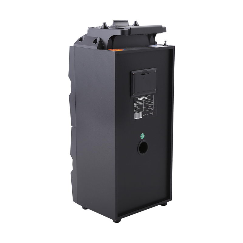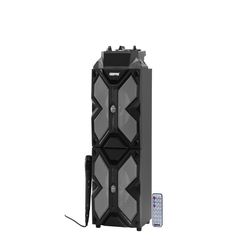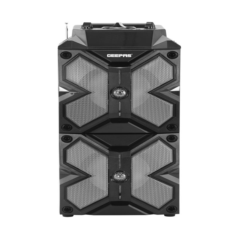 1. BOOST YOUR PARTY ANTHEMS WITH EXTRA BASS - Experience the Geepas portable speaker to add some serious low-end power to your music. It works by reinforcing basslines to create deep, punchy bass. Simply ON the button to activate and be blown away by resounding bass.2. MULTI DEVICE CONNECTION - Pair up to three smartphones or tablets simultaneously using Bluetooth technology remove the need for wired connections and complex set-up sequences.3. RECHARGE AND GO! - Don't let a lack of power ruin your gathering! It has a built-in battery with a charge indicator, providing you pristine cordless sound, never run out of power simply connect the included power cord and rock out! There's also a built-in USB 2.0 port, ideal for charging your iPad, iPhone, or other USB devices.4. PACKAGE INCLUDES - Remote Control, USB Charger and with one wired Mic.
