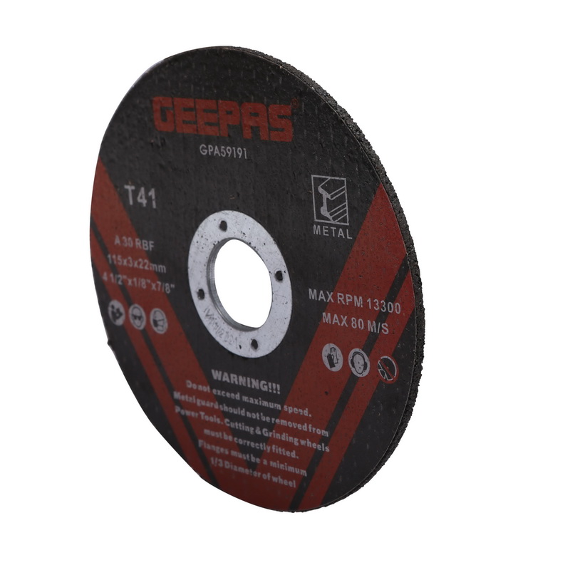 Geepas 115mm Metal Cutting Disc is suitable for stainless steel, metal surface, pars grinding and electroplating metal surface finishing. Used widely in aerospace, plant maintenance, foundry, automotive, metal fabrication and shipyards. Geepas - Cutting discs / Cut-off wheels for stainless steel.The BASIC* cut-off wheel for stainless steel can be used to cut metal sheets, profiles, pipes, rods with small diameters and solid material. The chemical purity of this tool is a requirement of machining stainless steel in order to avoid impairments to the material, such as corrosion, pitting corrosion or a reduction in the fatigue strength. The 3 mm thick cut-off wheels are particularly suitable for quick, comfortable and low-burr cutting.Cordless work Using this cut-off wheel you can work on smaller tasks in hard-to-reach application areas, benefiting from the usual Geepas quality but without requiring a power source. Our products in particular offer you the ultimate performance and lifetime, very clean cutting areas and low thermal load. This means there is only a limited amount of rework required, saving you time and money. However, the highest priority here at Geepas is the health of our customers. Geepas cut-off wheels therefore meet the highest safety standards and contribute significantly to improving your working conditions.