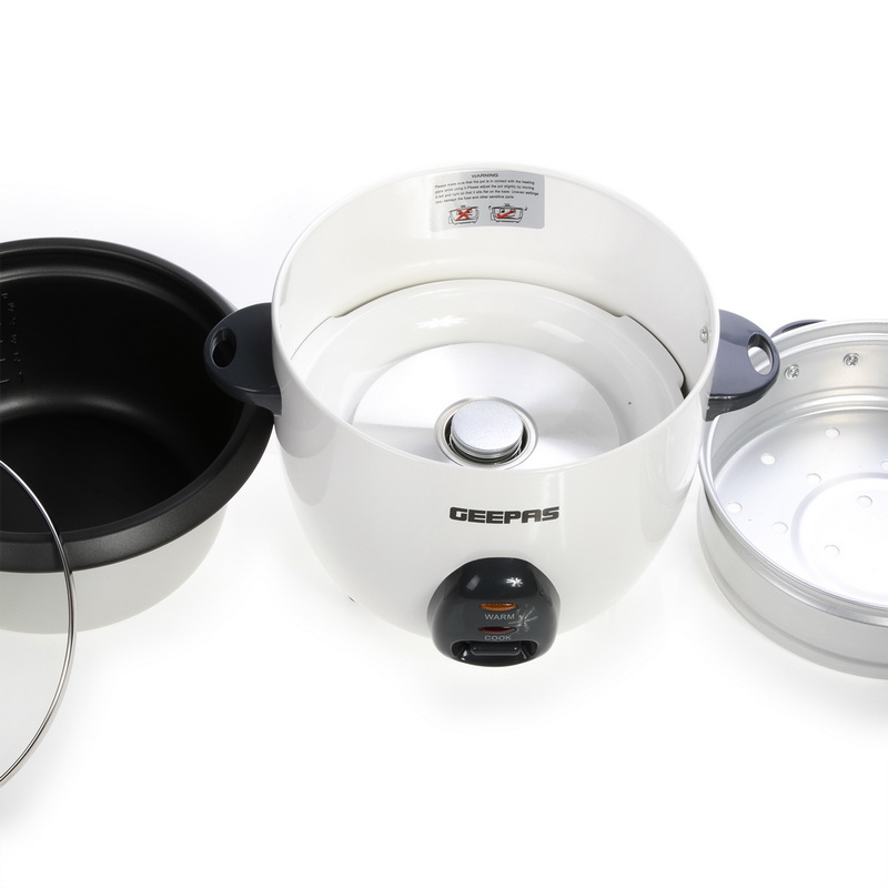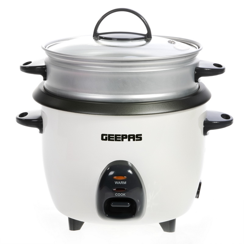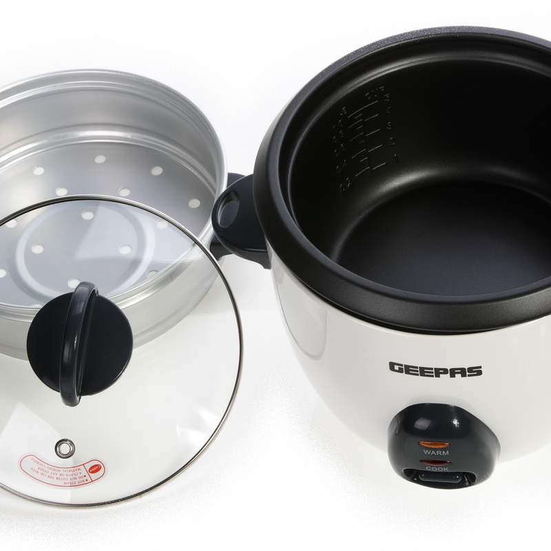 GEEPAS 1L RICE COOKER WITH STEAMER1. 3-IN-1 FUNCTIONS -This pot features three different functions namely cook, steam and keep warm. It allows you to choose how you prepare your rice. After cooking, you can also keep your food warm using 'Keep Warm' function. The steam function lets you cook rice healthily while preserving the nutrients. Perfect for cooking all types of rice - including Arborio, jasmine, white, basmati, long grain and more. Ideal for family dining, batch cooking and meal prepping.2. DURABLE AND TOUGHER OUTER BODY -The cooker has an elegant design and a durable body. It has non-slip feet at its base, they keep the pot firmly in place. It has a compact and cute design. It covers less space and does not clutter your kitchen counter.3. 1L LARGE CAPACITY ACCESSORIES -This pot has a large capacity of 1L. Now you can make large servings for the whole family or deal with sudden guests. It is quick and efficient. The package includes a measuring cup and spoon. The measurement cup adds preciseness to your cooking, and with the rice spoon, you can take rice out with ease.4. TEMPERED GLASS LID -This rice cooker has a sturdy lid made from tempered glass. It has a stainless steel rim that fixes it into place. It does not get smoky and lets you watch your rice as they are being cooked.5.COOL TOUCH HANDLES -The pot has cool-touch handles made from quality materials. It is safe to use them while the device is cooking.