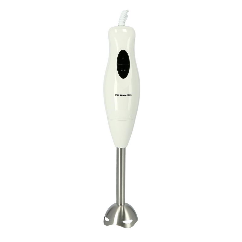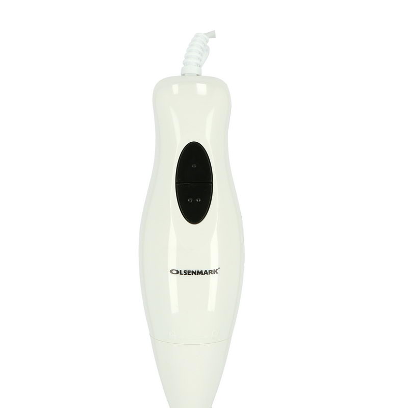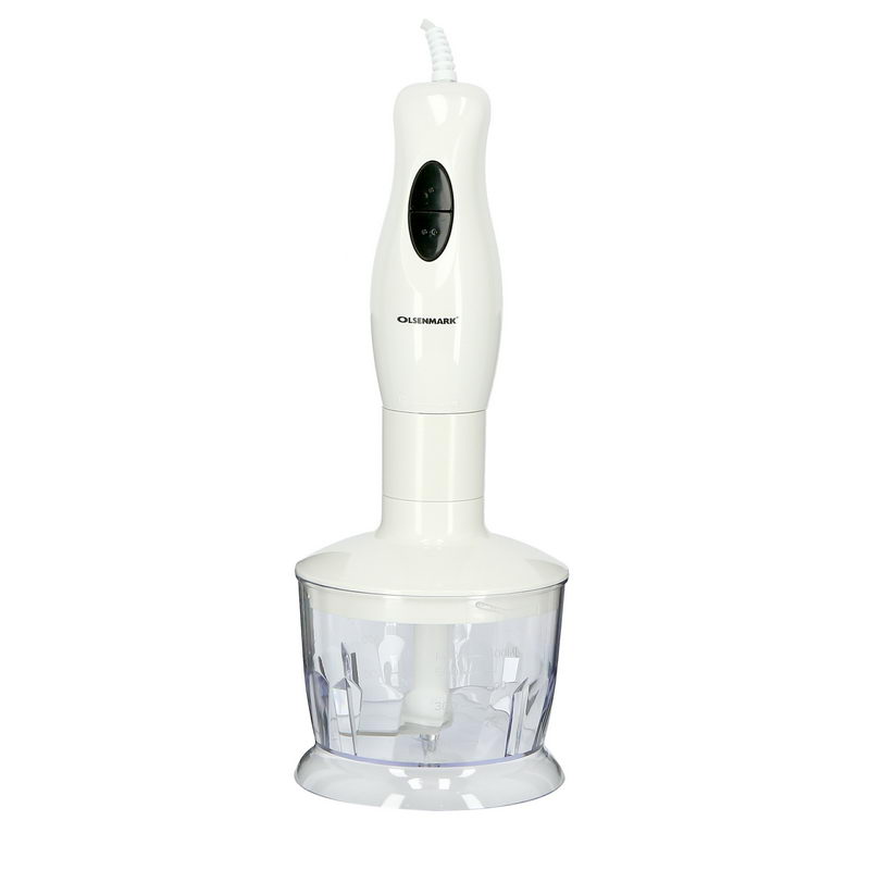 The Olsenmark Hand Blender has a variable one-hand speed wheel for maximum precision for performance control - simply adjust the speed wheel with your thumb. Chopper accessory (500 ml) For your big jobs: Chops and minces anything from meats and cheeses to onions, herbs, garlic, vegetables, nuts or dried fruits has never been easier - with results in just seconds. Whisk accessory quickly and easily whips, beats and stirs eggs, cream and fluffy desserts - from low speed to high. You've never seen faster results for whipping cream, beating eggs, mixing cakes or stirring Hollandaise sauce, as well as making instant, homemade desserts. For blending and mixing you can either use the 500 ml cup together with the hand blender to make a fruit smoothie or mix your favourite drink - or use the whisk attachment to beat eggs, eggs whites, cream or make creamy sauces. Box Contains: 1 x Olsenmark Hand Blender, 1 x 500 ml cup, 1 x 500 ml chopper, 1 x whisk.Detachable Stick The detachable Blending leg is easy to clean and takes up minimal storage space.Efficient & QuietOlsenmark hand blender sharp stainless steel blades and powerful copper motor are perfect for cutting hard ingredients up efficiently. Ergonomically designed handle provides comfortable and soft grip without risk of slipping.Abs MaterialThe body of this Blender is made of ABS material. ABS stands for Acrylonitrile Butadiene Styrene. It is polymer known for its strength and durability. This device is resistant to breakage and built to give a long-term performance.