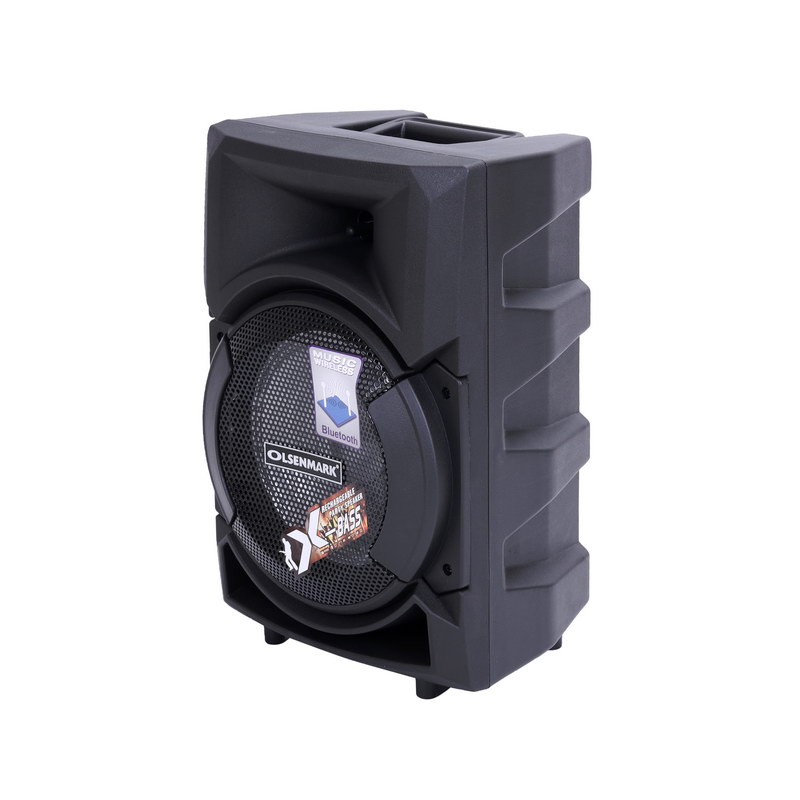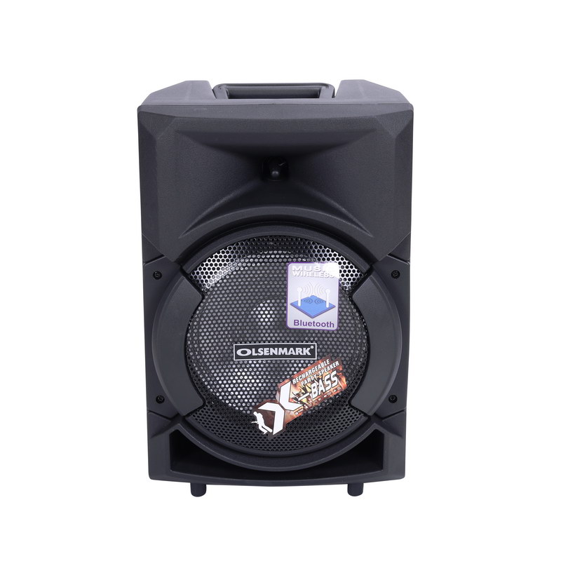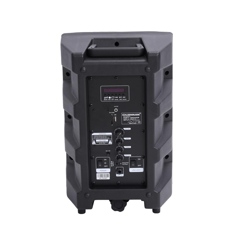 Olsenmark OMMS1178 Party Speaker with LED lights element adds a subtle allure that enhances your visual and audible experience. Alternating light patterns will move along with the sounds of the music to delight your senses and add a special touch to the songs you know and love. This Olsenmark Party Speaker With USB, SD, FM, Bluetooth & Remote Gives multiple functioning and can be connected via USB, has a Micro SD card slot. It also has FM radio. Now you can listen to your favorite radio channel with ease. Microphone Jack for Karaoke turn it up a notch with the microphone slot for karaoke and recording sessions as you enact your favorite artists best songs, have a wild time with the Olsenmark Party Speaker. 8" Woofer that executes a flawless audio experience with the full range 8" woofer embedded in the speaker as it maps you towards the magical world of music. Large capacity with built-in 1800mAh lithium battery for speakers, can bring you joy