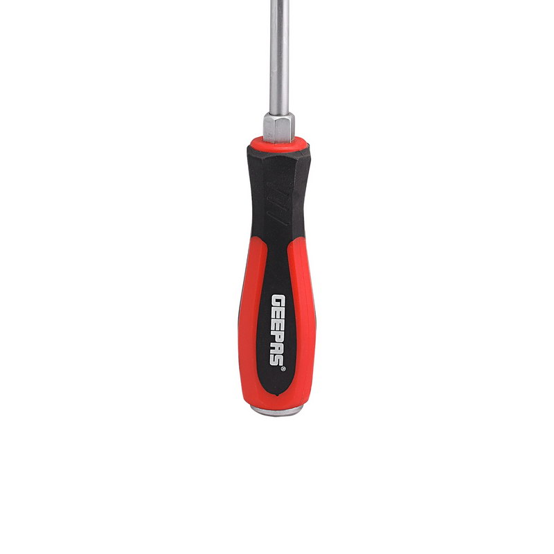 Geepas Screwdriver can be used in heavy duty works like construction and demolition. They can withstand hammer hits. The head have the correct size to fit in the slots.Comfortable Grip - The handle is designed to have a comfortable and controlled grip. It fits your hand with ease and allows smooth rotation.Material - The material used in is CR-V Chromium-Vanadium Steel. This steel is sturdier and long-lasting as compared to the usual steel. The tips have black tips due to certain chemicals. They make the tips resistant to wear.Highly Durable Tools - Due to the high durability, this screwdriver can be used by technicians. Mechanics and home hobbyists. Its an excellent addition to your toolbox and has a classy design. givlong-term performance and are available to you at an affordable price.