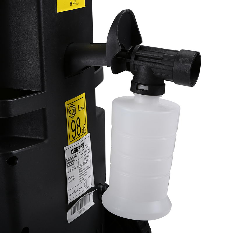 1. 6L HUGE DETERGENT TANK - Comes equipped with an extra-large 6L onboard detergent tank - perfect for blasting dirt and debris. 2. 5M PVC CABLE, SOAP BOTTLE, GUN HOLDER & POWER CORD HOLDER - This Geepas high pressure car washer has long 5 meter cable that makes to reach easily to any corner, Soap bottle to spray on the tough stains whenever required. Also comes with the gun and power cord holder to make it easy to carry and store.3. COMFORTABLE ROTARY SWITCH - It comes with easy and simple to use the rotary knob to switch the speed.4. STRONG HANDLE & WHEELS - This Car washer has high grip handle and huge wheels which makes it easy to move while cleaning the car or wall without any discomfort.5. HIGH-PERFORMANCE MOTOR - High-Pressure Cleaner has high pumping capacity (3000W, 125 bar, 6/ min), allowing for a complete and effortless cleaning of vehicles, decks, stone walls, swimming pool, etc. This pressure cleaning machine is effective even with the most stubborn dirt, helping you create a clean and pleasant living environment.