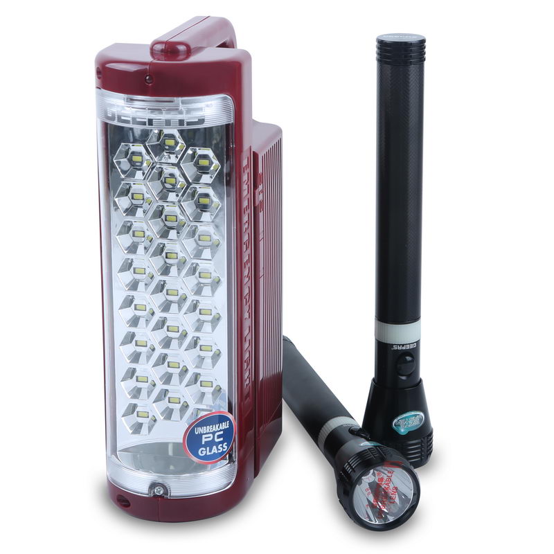 1. GEEPAS RECHARGEABLE EMERGENCY LANTERN - Geepas presents you with a rechargeable lantern, it is easy to carry as it has a compact size and can fit your travel bag with ease. With its brighter light and long-time performance, it is ideal for camping as well as sudden power outages. This lamp uses 24Pcs 12W Hi-Power brighter LEDs and requires 6 to 8 hours to charge completely.2. 24PCS & 16Pcs HI-POWER, 1800M DISTANCE RANGE - It is a more efficient way of providing brighter light in smaller sizes with 24pcs 0.5W LEDs in the lantern. And torch has 3W CREE led and is has a distance range of 1800 meters. The torch has a lifetime warranty for CREE LED.3. SAFE & COMFORTABLE - These lantern and torch are safe and easy to use, the lantern is having inbuilt features like over-discharge protection and auto lighting. And the torch is water-resistant, corrosion, shock-resistant aluminum body.4. HIGH AND LOW BEAM LIGHTS OPTION - This Geepas rechargeable lantern has a dual setting option which provides an option to use low power for 100 hours continuously at weak light and 5 hours continuous working at strong light. And the torch will work for 3 hours continuously in a single charge.5. OVER DISCHARGE PROTECTION - This lantern and torch has built-in features if in case you have left your torch on charging will avoid overheating and in the meanwhile with over-discharging of power too.