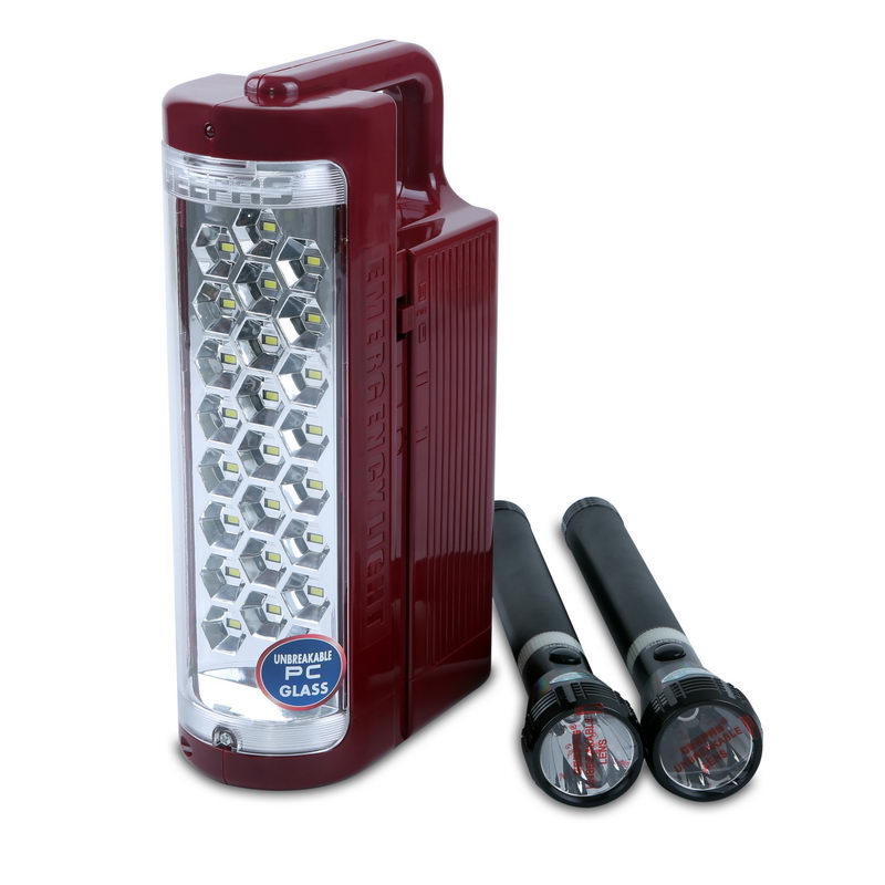 Rechargeable LED Lantern & 2Pcs Torch | Emergency Lantern with Light Dimmer Function | 24 Pcs Super Bright LEDs| Ideal for Outings, Trekking, Campaigning and more | 2 Years Warranty