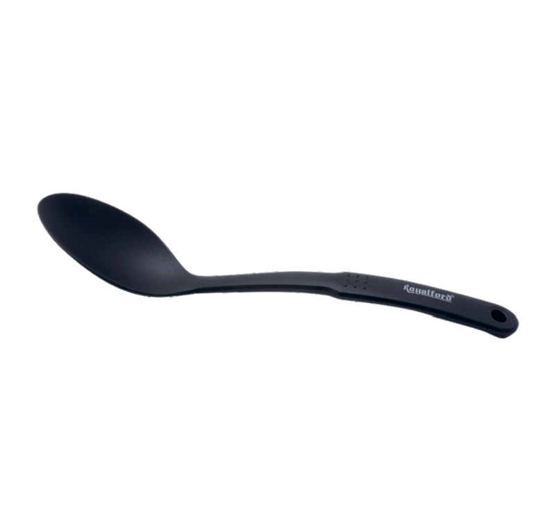 When you're looking for kitchen essentials, why settle for cheap, tacky items that don't last? This cooking spoon is part of the Royalford range, which uses high-quality materials to create simple tools that last for years. It's made of sturdy nylon material, with a soft-grip handle that's really comfortable to hold.And with its gentle nylon head, it won't scratch your precious non-stick pans. Cooking tools don't get much more versatile than this. It's ideal for stirring, serving and baking. Thanks to its heavy-duty nylon design, this spoon won't discolor or absorb odors. This makes it ideal when you're cooking with strong or colorful ingredients, such as blackberries and cinnamon.This Nylon cutlery divine serving spoon allows for you to serve meals with ease and match with little hassle to any existing dining you may have. Designed to work with various different meals and dishes, and prove to be the most efficient and effective in the kitchen and the dining room. It's heat safe to 210 degrees Celsius, so you don't have to worry about it melting. Not only that, but it's resistant to stains and odors, so it's really easy to clean. And easy to store as it has hanging hoop at the top of the handle, simply hang off a hook or hanging rack to store it in easy reach for next time.