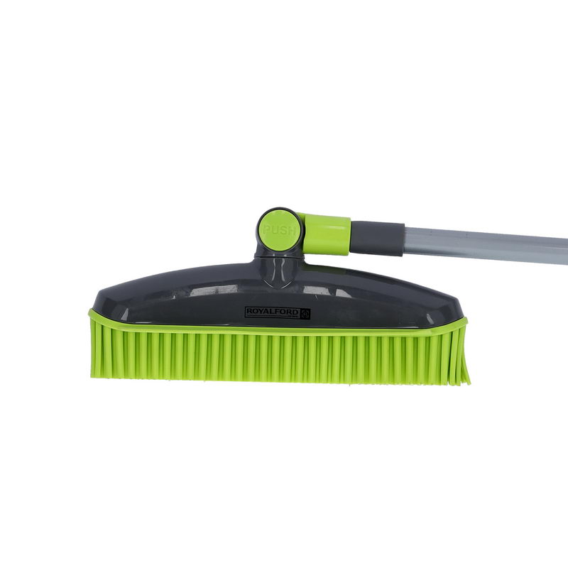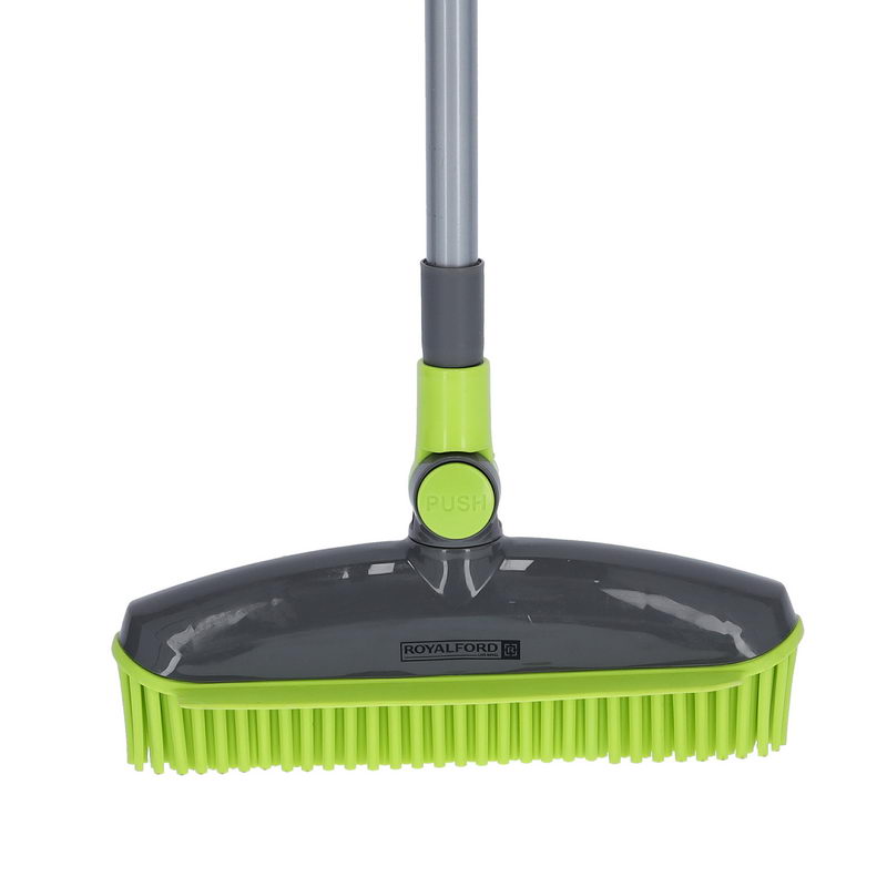 1. NO NEED TO STOP, NOTHING LEFT BEHIND - Sweeper has balanced, lightweight construction featuring a stainless steel handle and streamlined bristle head angled for ergonomic floor-sweeping. It is designed to be attractive and uses bright shiny colour. This brush works great with marble and tiled flooring, as well as on carpets and other tapestry. And looks the best and does the job well- Why settle for anything less! Ideal for a one-sweep clean on floors indoors without raising any dust!2. ONE SWEEP, CORNER CLEANING - Made from high quality, durable PP+TRP+Steel materials, it can be used as a kitchen, home, office, or lobby broom. The polymer bristles gather up dust and dirt on uneven surfaces and create a barrier to collect dust on smooth surfaces in just one sweep. Firm angled bristles on the tip for sweeping effectively into corners and edges. Ideal for a one-sweep clean on floors indoors without raising any dust!3. WIDELY USED & EASILY STORED - Works great for the toilet, kitchen, wall, bathtub, grout, tiles, glass, sink, hard to reach corners and cracks under the furniture. Features a hanging hole for handy storage.4. ANTI-SCRATCH & PROTECTIVE - This Royalford Broom has been upgraded the design and added plastic cover into both ends of rods to prevent your hands from being hurt by the side of the steel alloy handle.