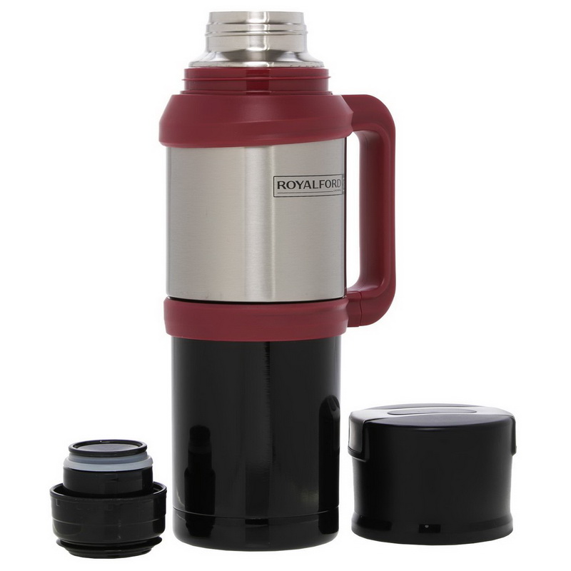 Portable And Leak Resistant - This vacuum flask has a compact design and is lightweight. It can easily fit in your bag as it does not take up much space. It has a tight insulation lid that fits perfectly and prevents any liquid from falling. It is leak-proof and is safe to be put in a travel bag.Preserves Flavor And Freshness - The bottle is eco-friendly it is safe to put your drinks inside it. It maintains hygiene, and by using it, you are refusing plastic bottles which are harmful to the planet. It maintains the flavor and preserves the original freshness of the drink. You can enjoy the same warm or cold cup of your favorite drink at its best flavor.High-Quality Vacuum Insulation - This Royalford thermo vacuum flask has double wall insulation with a vacuum inside. It prevents the heat from escaping out or entering in. This way it maintains a constant temperature inside and keeps the liquid hot or cold.Double Wall Stainless Steel Body -The body is made from stainless steel. It also has a 304 Stainless Steel inner pot. It gives the bottle an elegant touch and is super effective in maintaining the internal temperature. With the open mouth style, you can put ice cubes inside with ease. It is super easy to clean and is dishwasher safe. Therefore, you can leave the cleaning to the washer and get is ready to be used.